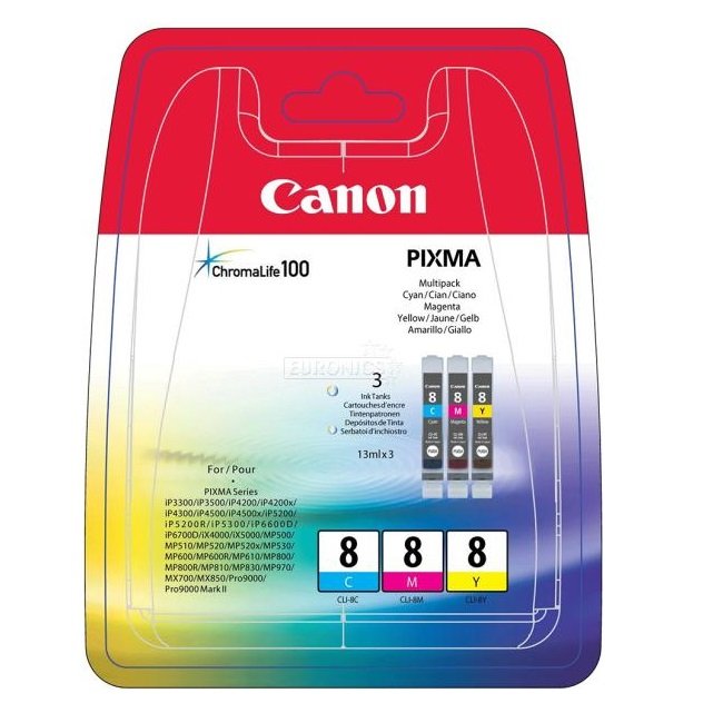 Cumpara acum Cartus cerneala Canon CLI-8MULTI1 Cyan + Magenta + Galben si printati documente si fotografii impresionante si durabile. Cartus inkjet Canon CLI-8MULTI1 original va functiona garantat in armonie cu imprimanta dvs cu jet de cerneala Canon.